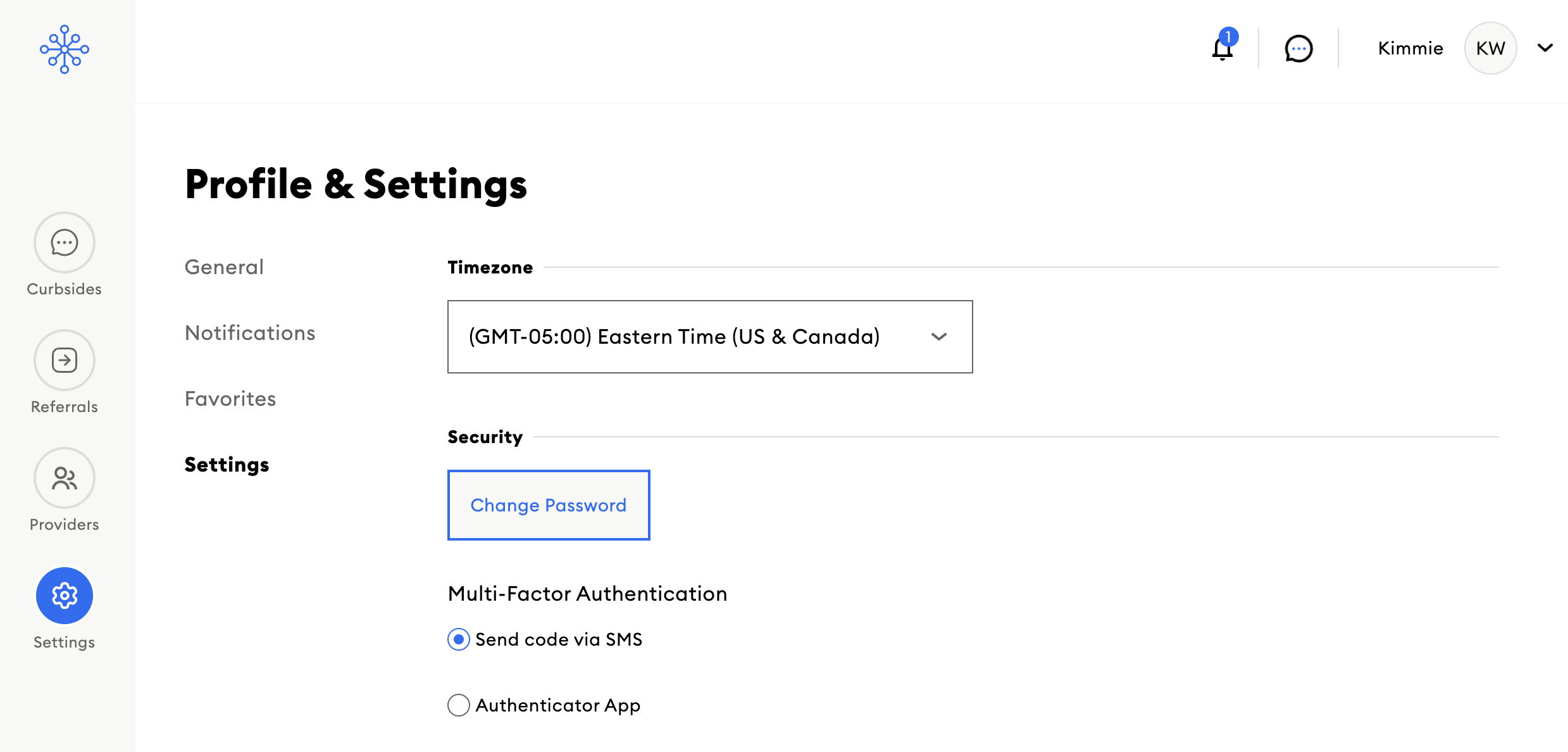 Step 2: Under, ‘Multi-Factor Authentication’, click your preferred method, either ’Send code via SMS’ or ‘Authentication App’.